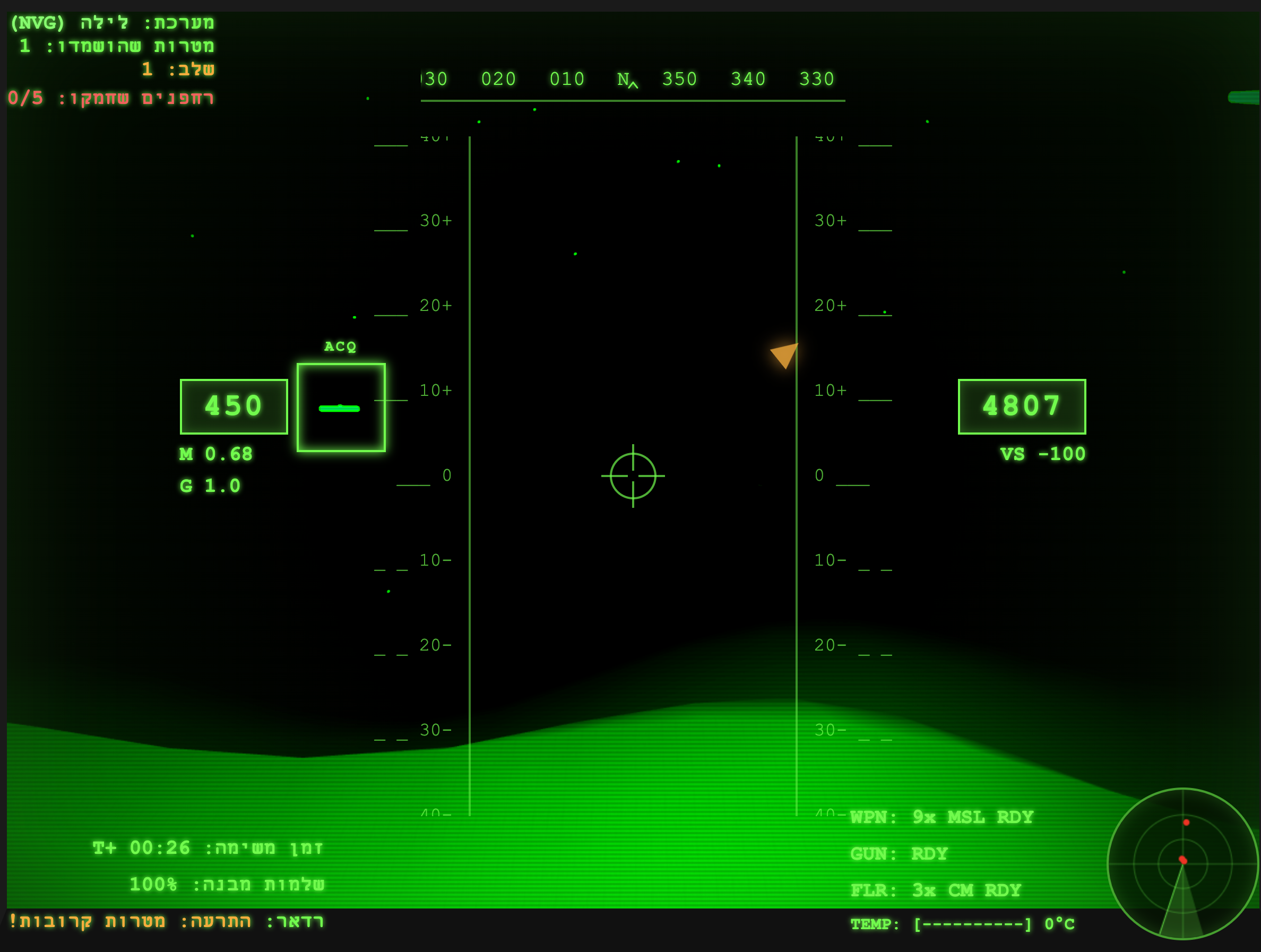 - מקש N: מעבר לראיית לילה (NVG - Night Vision Goggles).